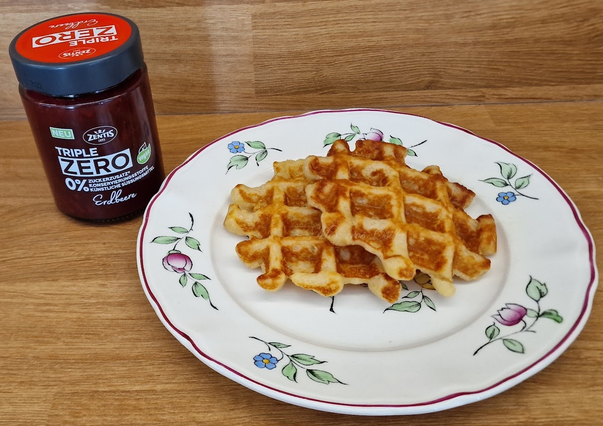 Mint minden gofritészta, ez is sűrű ahogy a képeken is látható. Volt már párszor, hogy tanácsot kértek tőlem amiért lapos maradt a sütőben a tészta. Olyan is volt aki kioktatott, hogy milyen butaságot beszélek, már hogy kellene a gofri tésztájának sűrűnek lenni? Hááát, távol legyen tőlem, hogy bárkit kioktassak, csak azt tudom mondani amit itt is látok a gofri hazájában, Belgiumban. Itt bizony a gofri tészta sűrű amikor a gépbe teszik, nem pedig folyékony. Igy aztán nagy örömömre ez a tészta is sűrű maradt, a cukor egyáltalán nem hiányzik belőle. Próbáljátok ki, jó szívvel ajánlom…